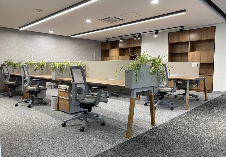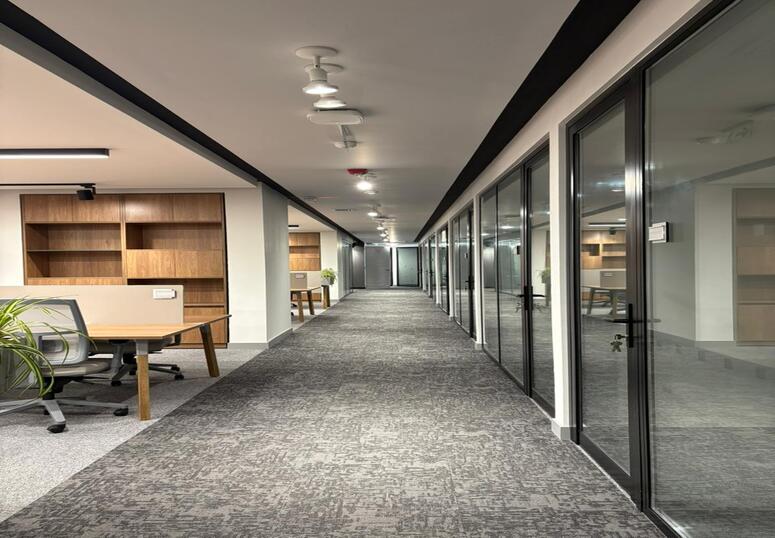 Intervención de un área total de 400 m², diseñada para 36 puestos de trabajo. El proyecto incluye salas de juntas, punto de café, 14 oficinas cerradas con control acústico y otros servicios complementarios. Ejecución: 75 días.