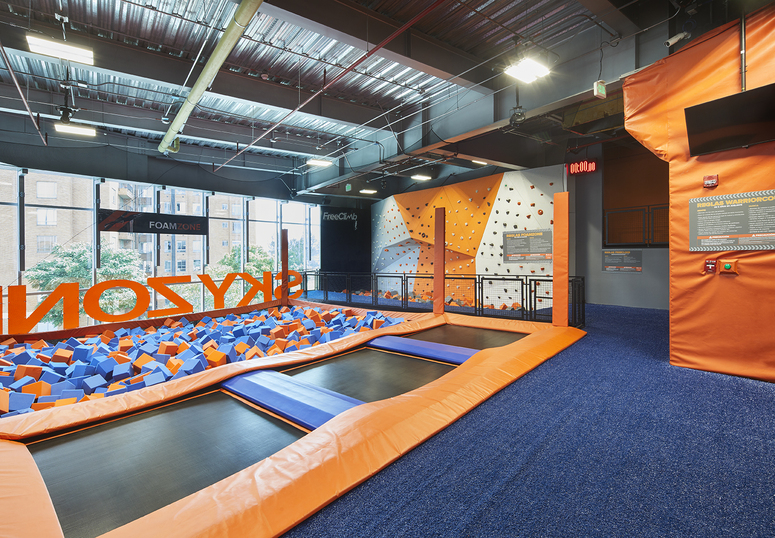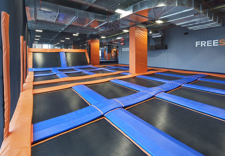 En nuestro proyecto para Skyzone desarrollamos mobiliario para alto tráfico, máximo confort y mucha innovación. ¿El resultado? Un espacio único para divertirse.